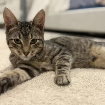 Hi, my name is Jelly Belly. I am a 7-month-old, male tabby. I am a petite tabby with beautiful markings...