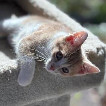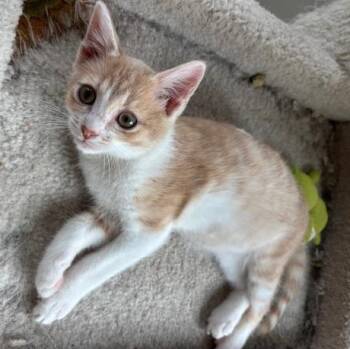 Peaches is an adorable three-month-old orange and white kitten with a heart just as warm as his name....