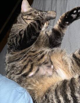 Pizza Hut is a female, domestic medium hair and born early March 2025 Pizza Hut looks like...