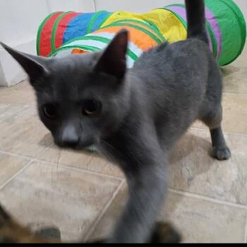 Hi, my name is Stone Rain. I am an 8-month-old, male, gray kitty. My foster mom said it's tough to...
