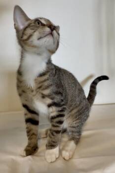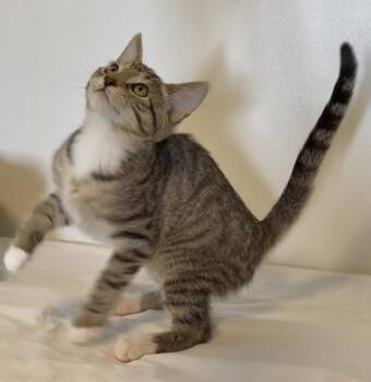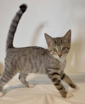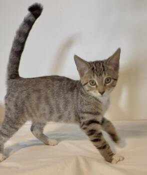 Meet Tappie Female • 4 months old • Tabby • DSH Tappie may be the only girl in her litter...