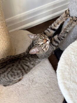 DOB: 06-01-2025 Rhubarb is a good-looking kitten with gorgeous tabby markings. Although he has a curious nature, he can be...