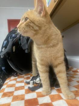 This handsome one-year-old orange tabby is as sweet as his name suggests. Meatball is a low-key, easygoing guy...