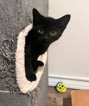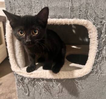 Onyx is a sleek, playful black kitten with eyes full of curiosity...