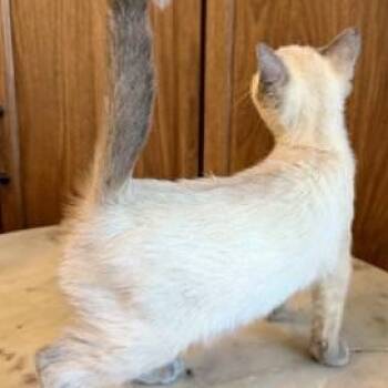 Snowflake is a stunning Siamese girl with soft gray markings and the loveliest icy-blue eyes....