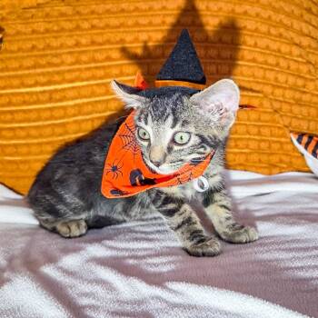 Witch's Ghost is a high energy and inquisitive kitten who always wants to explore new things.
