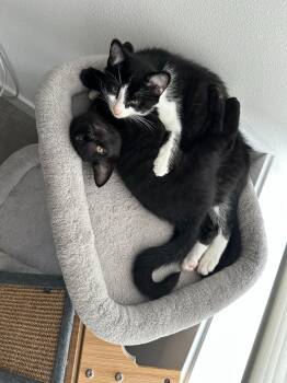 Meet Tuxie and Ink, a bonded pair of siblings. They are approximately 10 weeks old.