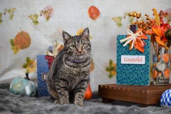 Meet Gourd-Geous Kitty. Gourd-Geous Kitty is a 6 month old, spayed female, DSH.