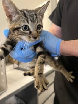 Hello friends, my name is Turbo, and I'm an adorable lil' male tabby kitten who's just waiting for the purr-fect...