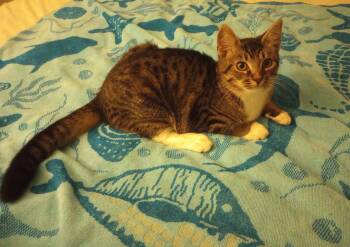 Tab (Originally Tabitha until gender was confirmed) is a very handsome Tabby. He is sweet, lovable, energetic, acrobatic, and playful....