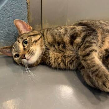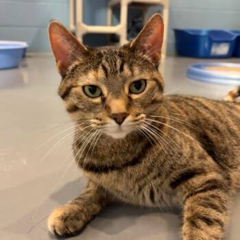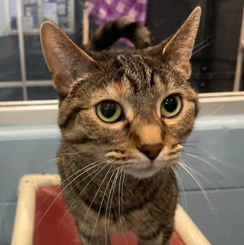 Say hello to Tip Tail, a beautiful brown tabby with a uniquely curled tail that...