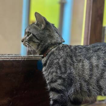 Lucy is a beautiful brown tabby with...