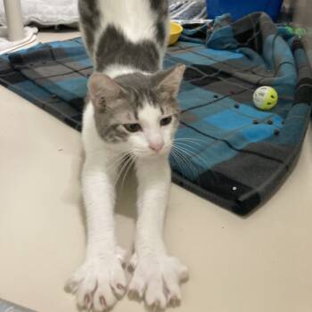Pop is everything you could want in a sweet young cat! Playful and energetic yet loving of pets and cuddles...
