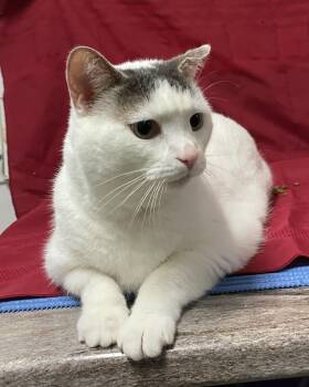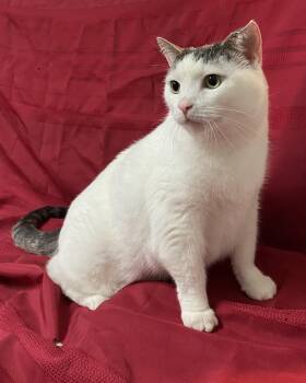 Meet Brigitte, a large white cat with grey on her head and tail. She is around 4 years...