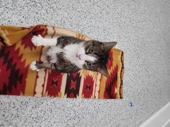 Breslin is an amazing, sweet cat who loves sitting on laps, getting brushed endlessly, being petted, and cuddling on blankets...