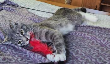 Meet Peanut! Wand toys, moving mice, and anything that flutters will bring out his silly side. He’s a late-night zoomies...
