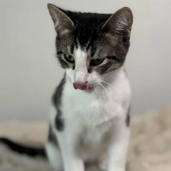 Meet Patches, a 6-month-old Domestic Shorthair kitten with a classic tabby-and-white coat and a heart full of sweetness. This affectionate...