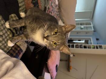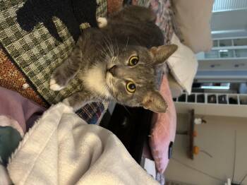 Gray-Gray is a young, handsome gray and white tuxedo gentleman with a heart made entirely of love....