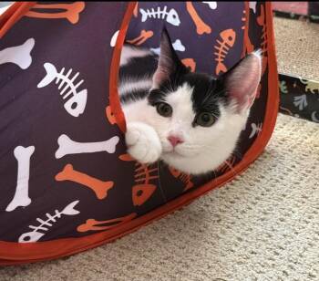 Bella is a 5½-month-old short-haired kitten with a striking black-and-white coat that looks like she’s dressed for a fancy gala!...