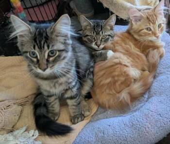 This little cutie orange tabby and white kitten with his white paws is ready for his forever home!...