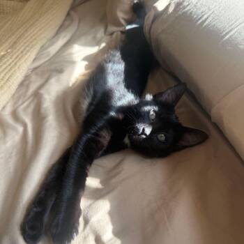 Butterscotch is a female, black with white Domestic Short Hair kitten. Her estimated date of birth is August 12, 2025....