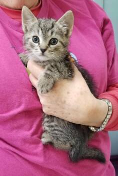 This fun, active kitten came in at about 7-8 weeks old (10-24-25) frightened of people. He'd hiss and spit at...