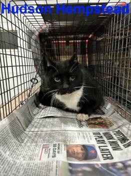 Hudson was one of 12 cats left homelessd after house fire & owner went into assisted living