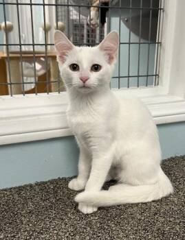 Meet Stevie, a little snowball of pure white energy. This sweetie is ready to pounce...