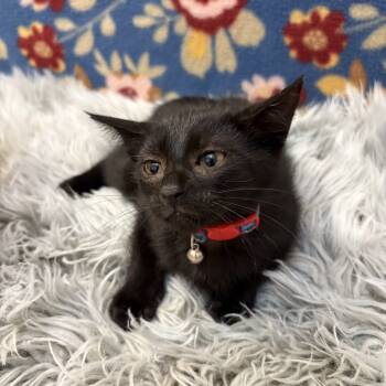 Raven is a beautiful little black kitten who was rescued from a large outdoor cat colony of over 50 cats....