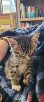 Wiggles is a 10-week-old male. He is microchipped and up to date on his distemper vaccinations.