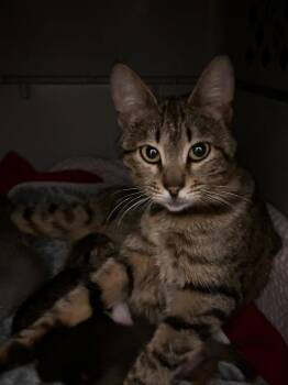 This SWEETEST momma gave birth to 6 babies! She is 1-1/2 years old and has lived with other cats. All...