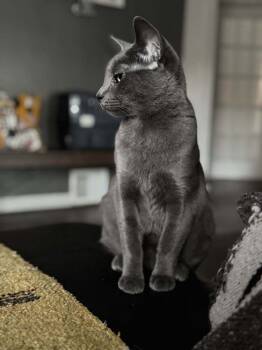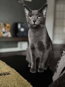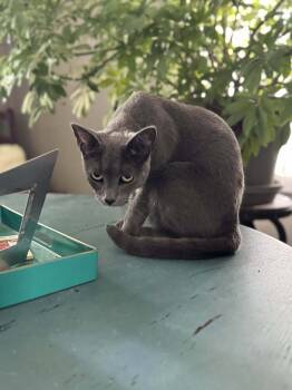Ovale is a beautiful young gray kitty with striking bright green eyes. She was found on the streets...