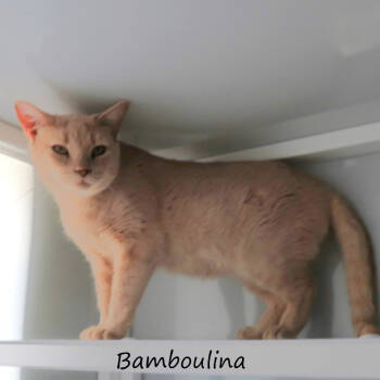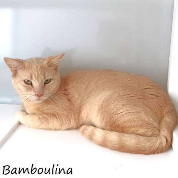 BAMBOULINA is a female-spayed short hair apricot dilute tabby cat. She was born about July 2021. We have no data...