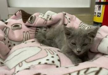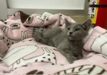 Curly is a gorgeous, fluffy Russian Blue...