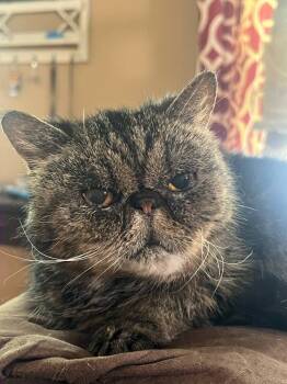 Name: Tabitha Age: Distinguished (Senior) Vibe: Cozy Goth Grandma Don't let the resting sass face fool youTabitha is a lovebug...
