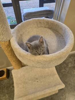 Shadow is a 7-week-old Russian Blue kitten bursting with personality and charm....