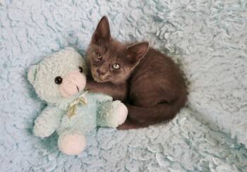Barret is a stunning Russian Blue domestic short-haired mix...