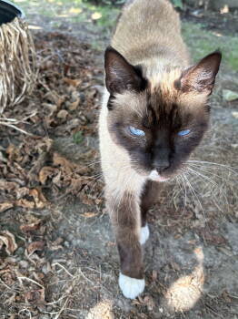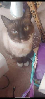 Kung Pao (the handsome one with the darker face) is 8 years old, and Katniss (the beautiful Siamese/Snowshoe with white...