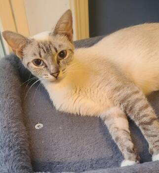 Dawn is a Siamese mix kitten with Lilac Point colors. She has a gentle and sweet personality.