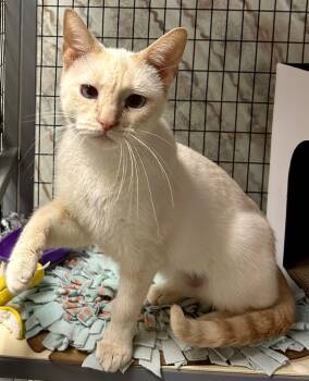The Siamese cat breed is known for its striking appearance characterized by a slender body, almond shaped blue eyes, and distinct color points on their ears, face, paws, and tail. Renowned for their vocal nature and high intelligence, Siamese cats are affectionate, sociable, and thrive on human interaction. Their sleek coat requires minimal grooming, making them an ideal choice for busy pet owners. With their playful and outgoing personalities, Siamese cats make wonderful companions and are cherished by many cat lovers.