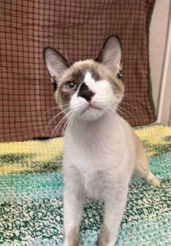 The Siamese cat breed is known for its striking appearance characterized by a slender body, almond shaped blue eyes, and distinct color points on their ears, face, paws, and tail. Renowned for their vocal nature and high intelligence, Siamese cats are affectionate, sociable, and thrive on human interaction. Their sleek coat requires minimal grooming, making them an ideal choice for busy pet owners. With their playful and outgoing personalities, Siamese cats make wonderful companions and are cherished by many cat lovers.