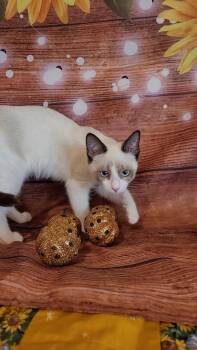 The Siamese cat breed is known for its striking appearance characterized by a slender body, almond shaped blue eyes, and distinct color points on their ears, face, paws, and tail. Renowned for their vocal nature and high intelligence, Siamese cats are affectionate, sociable, and thrive on human interaction. Their sleek coat requires minimal grooming, making them an ideal choice for busy pet owners. With their playful and outgoing personalities, Siamese cats make wonderful companions and are cherished by many cat lovers.