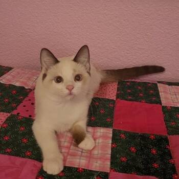 The Snowshoe cat, known for its striking appearance, is a medium sized breed with distinct markings and captivating blue eyes. Bred from Siamese and American Shorthair cats, Snowshoes have a unique coat pattern of dark points on a light background. These sociable and affectionate cats are known for their playful nature and strong bond with their human companions. With their striking looks and friendly personalities, Snowshoes make wonderful pets for those seeking an engaging feline companion.
