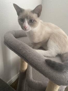 The Snowshoe cat, known for its striking appearance, is a medium sized breed with distinct markings and captivating blue eyes. Bred from Siamese and American Shorthair cats, Snowshoes have a unique coat pattern of dark points on a light background. These sociable and affectionate cats are known for their playful nature and strong bond with their human companions. With their striking looks and friendly personalities, Snowshoes make wonderful pets for those seeking an engaging feline companion.