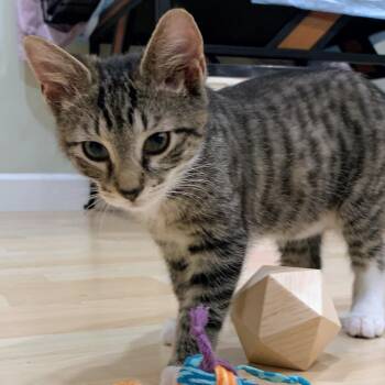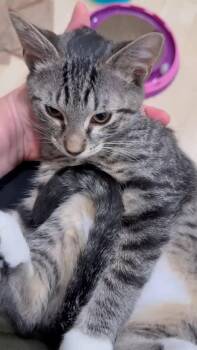 Bailey is a follower of fellow kittens and melty snuggler. Bailey likes being held and will melt in your arms...