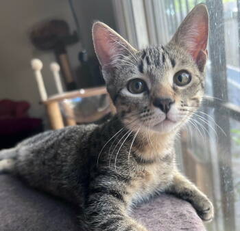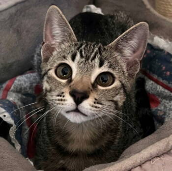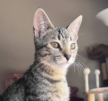 Hey there, everyone! I'm Kuzco, an outgoing, cuddly, curious, and energetic brown tabby fella...