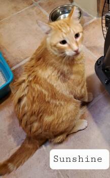 SUNSHINE is a male, about 6 years old. He is a big friendly Ginger Tabby. He is a house cat...
