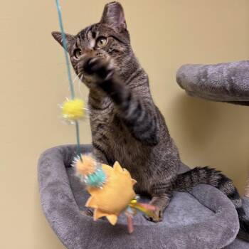 Friendly, handsome and loving, Mich is a delightful young man with a soft brown tabby coat and engaging amber eyes....