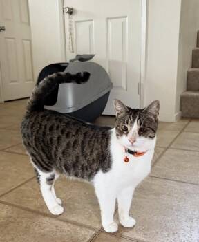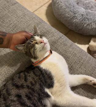 Aloha everyone! My name is Crimson. I’m a petite 8 lb, 3 year old, white tabby found by my rescue...