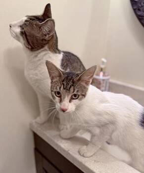 Six and Seven are gorgeous, playful, and sweet, seven-month-old, patch tabby brother kittens looking for a loving guardian.